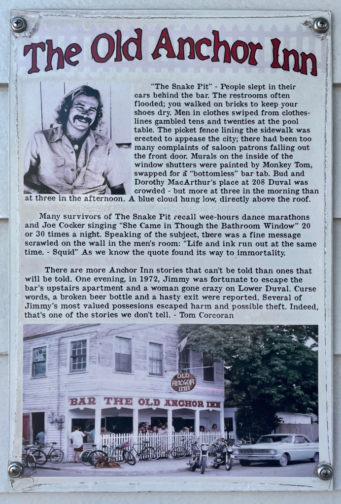 On to the Snake Pit, or what was once the Snake Pit. We peddled down to 208 Duval, to visit the spot where ladies dance for dollars. Stories have been told about all of the debauchery of the 70’s. I guess the building was destined to be an adult playground, as it’s now the Red Garter Saloon. In all of our trips to Key West, we never knew there was a historical marker…….